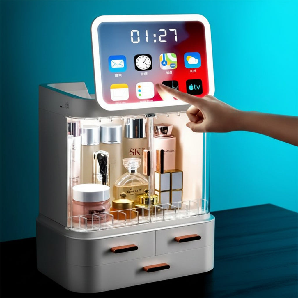 Organisez votre espace de beauté avec style grâce à notre Boîte de Rangement à Écran LED ! Conçue pour allier fonctionnalité et élégance, cette boîte de rangement vous permet de garder vos produits de beauté et accessoires bien organisés tout en ajoutant une touche moderne à votre espace de travail.