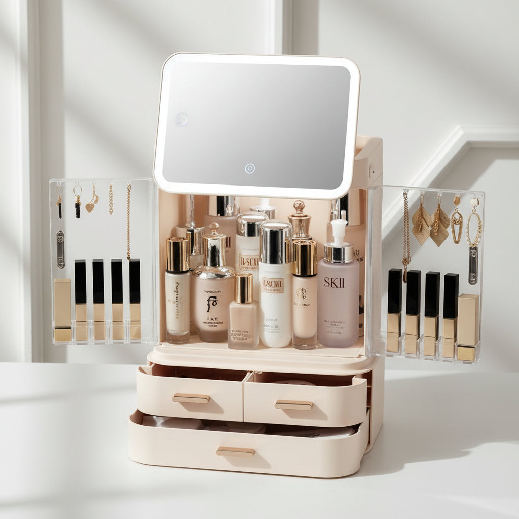 Optez pour la praticité sans compromis sur le style avec notre Boîte de Rangement à Écran LED. Gardez vos produits de beauté et accessoires organisés et à portée de main en tout temps. Commandez dès maintenant et transformez votre espace de beauté en un sanctuaire de style et de fonctionnalité !