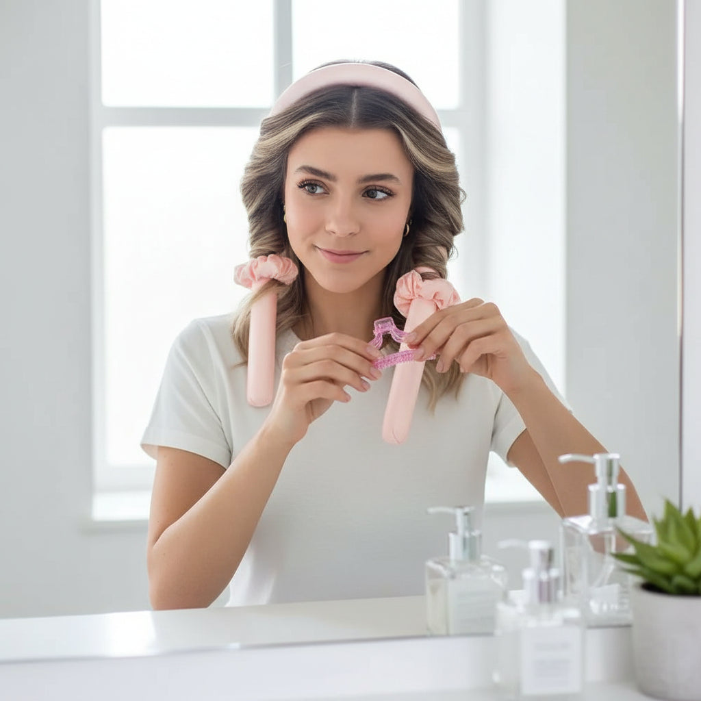 L'utilisation est simple : il vous suffit de placer le serre-tête autour de votre tête, sélectionner les mèches que vous souhaitez boucler, les enrouler autour des boucles intégrées, puis laisser reposer. Que ce soit pour une coiffure quotidienne ou pour une occasion spéciale, notre serre-tête boucleurs est l'accessoire idéal pour des boucles sans effort et sans dommages.